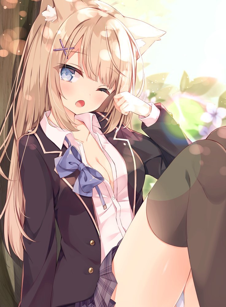 【插画/CG】图片艺术作品#23446(JPG/736x1000/0.11MB);是由作者「hoshi」创作;产权归属「原创」;关联标签:原创,hoshi,兽耳,前发,黑丝,碧眼,脸红,胸部,猫耳,cleavage,衬衫,发饰,长发,长袖,视线正对,闭只眼,開いた口,胖次,学校制服,坐姿,短裙,貧乳,single,下着,original,animal ears,bangs,black legwear,blue eyes,blush,nekomimi,dress shirt,hair ornament,long hair,long sleeves,looking at viewer,open mouth,pantsu,school uniform,sitting,skirt,small breasts,underwear