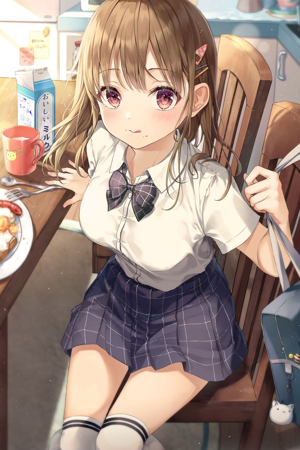 【插画/CG】图片艺术作品#24323(JPG/1800x2700/0.62MB);是由作者「r_o_ha」创作;产权归属「原创」;关联标签:原创,r_o_ha,胸部,茶发,发饰,长发,视线正对,横乳,迷你短裙,红色眼,学校制服,衬衫,坐姿,短裙,single,黑丝,白丝,絶対領域,original,r o ha,brown hair,hair ornament,long hair,looking at viewer,medium breasts,miniskirt,red eyes,school uniform,dress shirt,sitting,skirt,black legwear,white thighhighs,zettai ryouiki