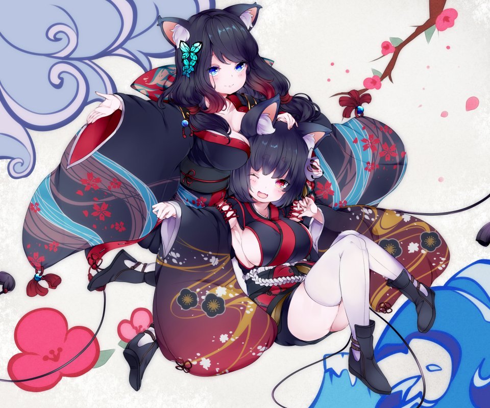 【插画/CG】图片艺术作品#9898(JPG/2016x1680/3.4MB);是由作者「yaekn」创作;图中角色有「山城」「fusou」等;产权归属「碧蓝航线」;关联标签:fusou,山城,碧蓝航线,yaekn,兽耳,黑发,碧眼,胸部,猫耳,cleavage,发饰,和服,巨乳,长发,仮面,赤い目,短发,黑丝,白丝,絶対領域,yamashiro (azur lane),azur lane,animal ears,black hair,blue eyes,nekomimi,hair ornament,japanese clothes,large breasts,long hair,mask,red eyes,short hair,black legwear,white thighhighs,zettai ryouiki